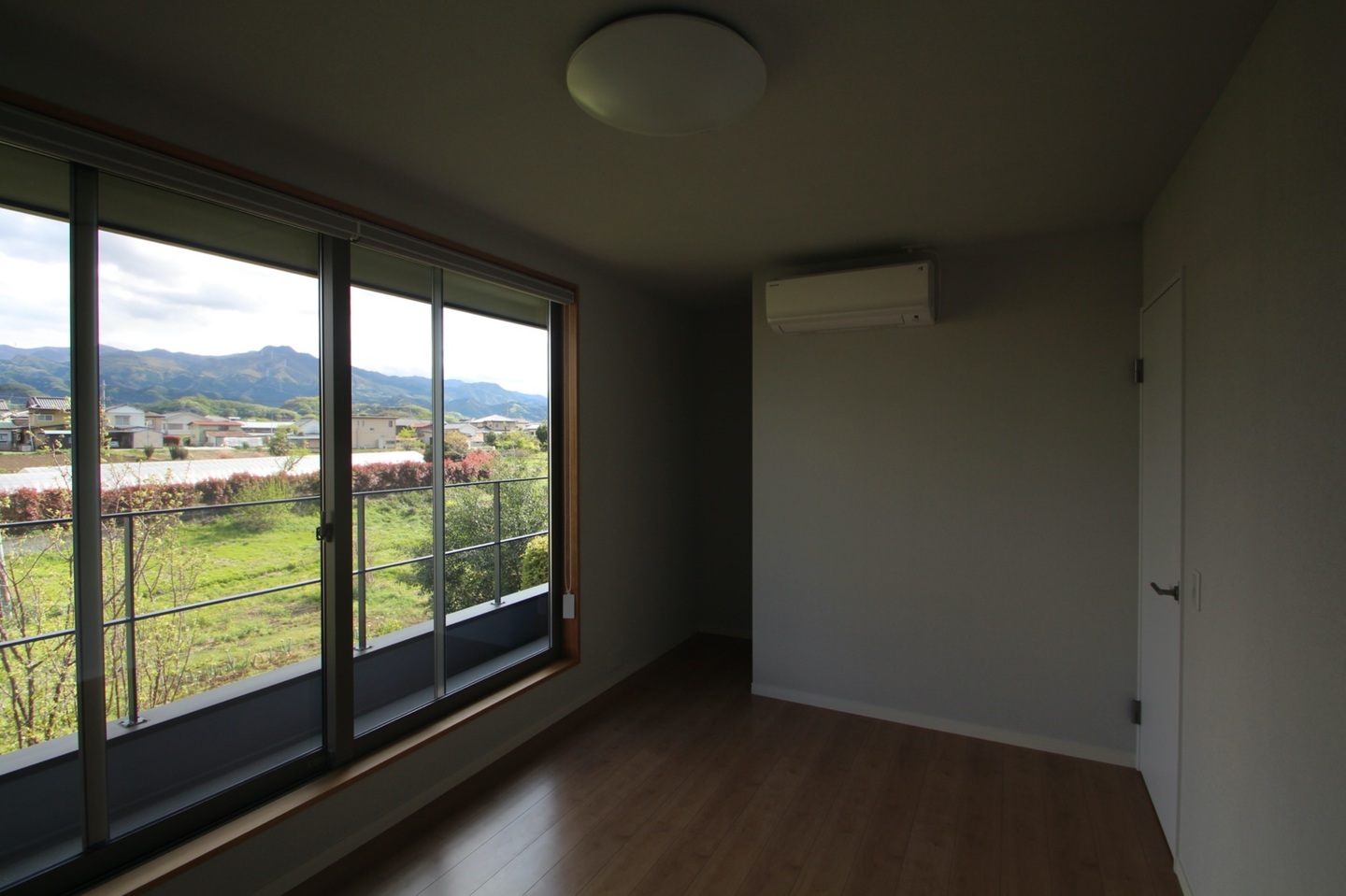 2階に上がると、広めのウォークインクローゼットのある個室が2つある。バルコニーからの山々の眺めが素晴らしい。