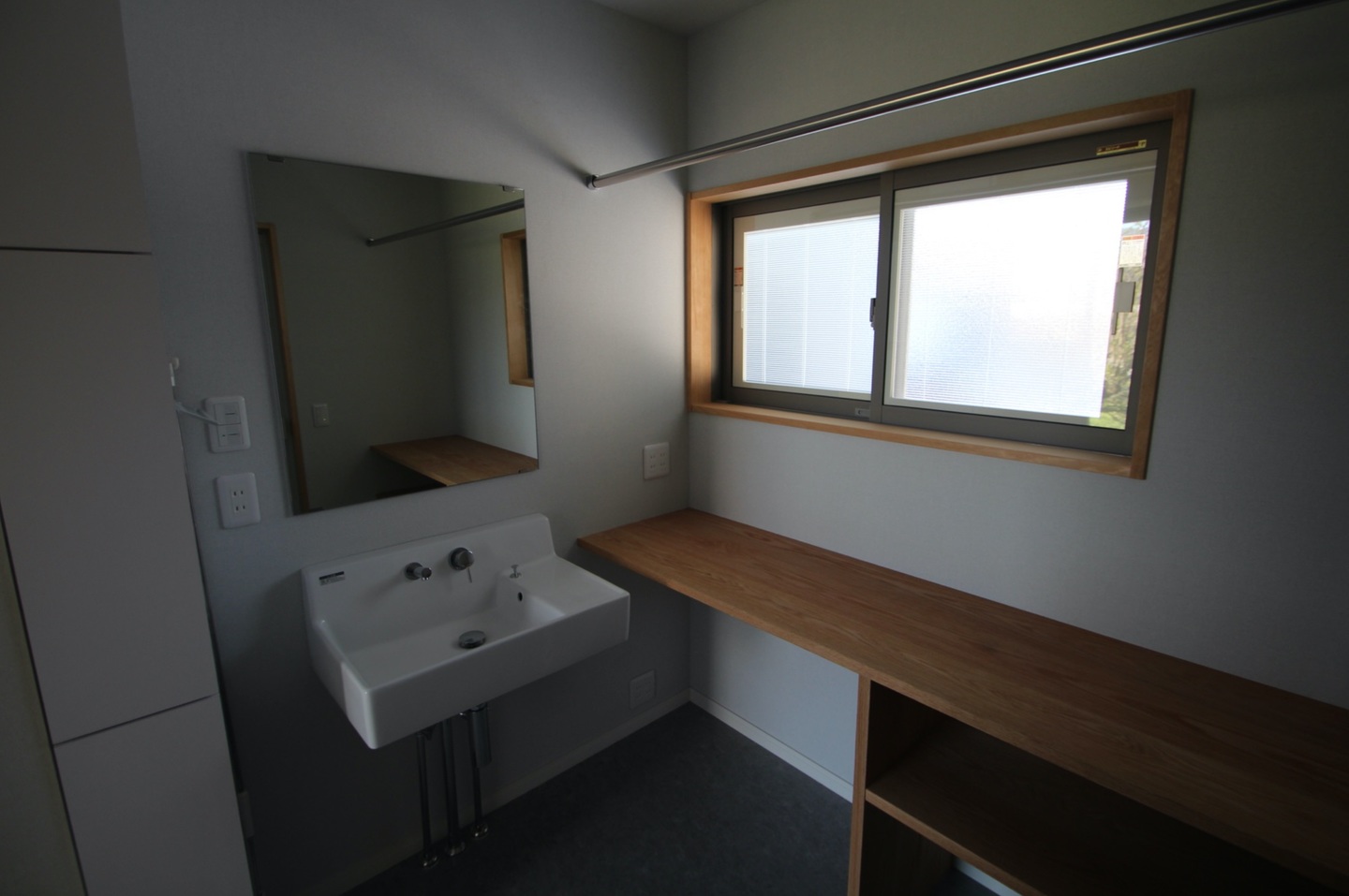 共働きのSさん。洗濯は室内干しがメインの為、水回りを物干し場として兼用した。